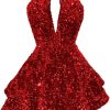 Halter Sequin Homecoming Dresses Short Sparkly Glitter Cutout Mini Backless Tight Bodycon Prom Cocktail Dresses for Women