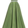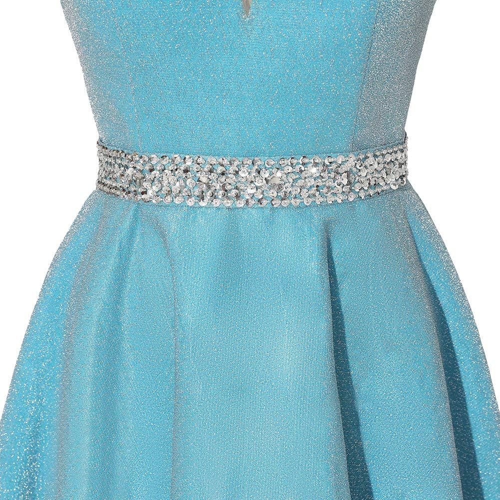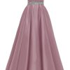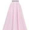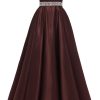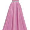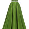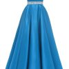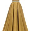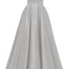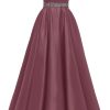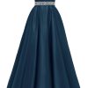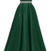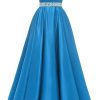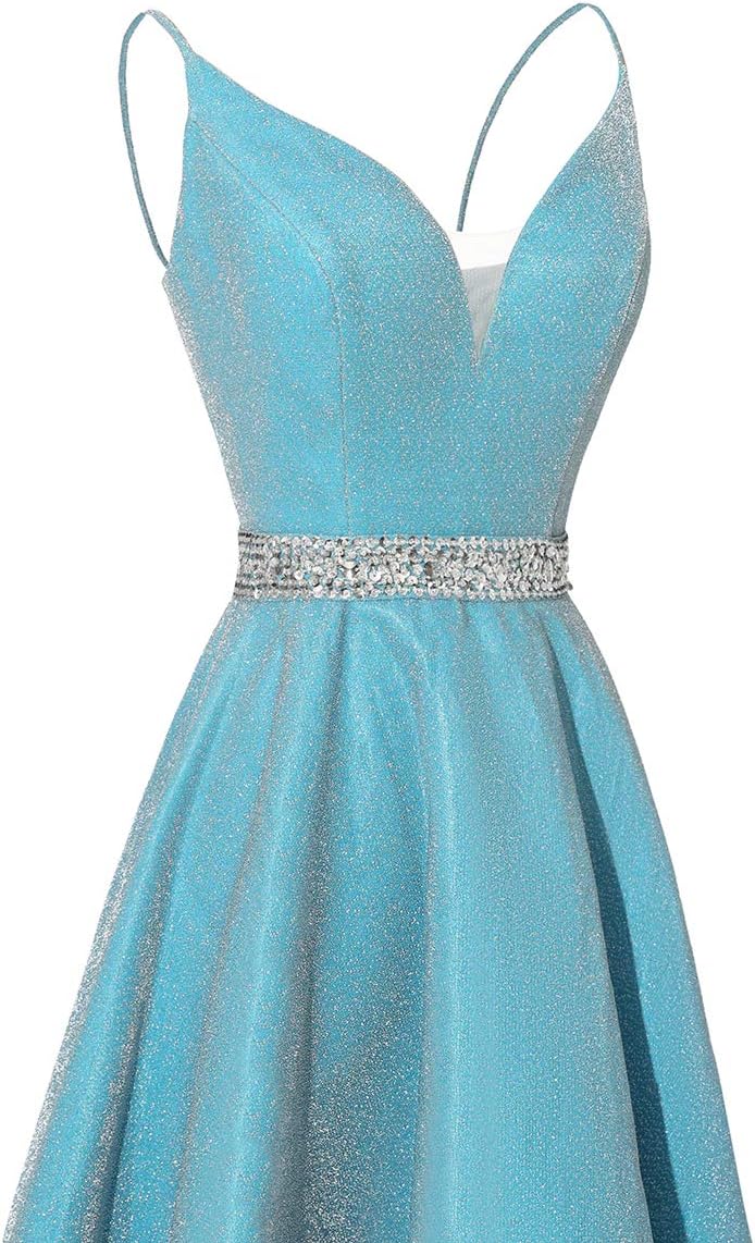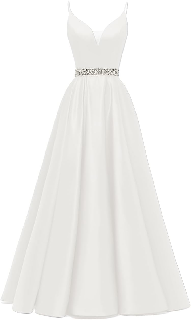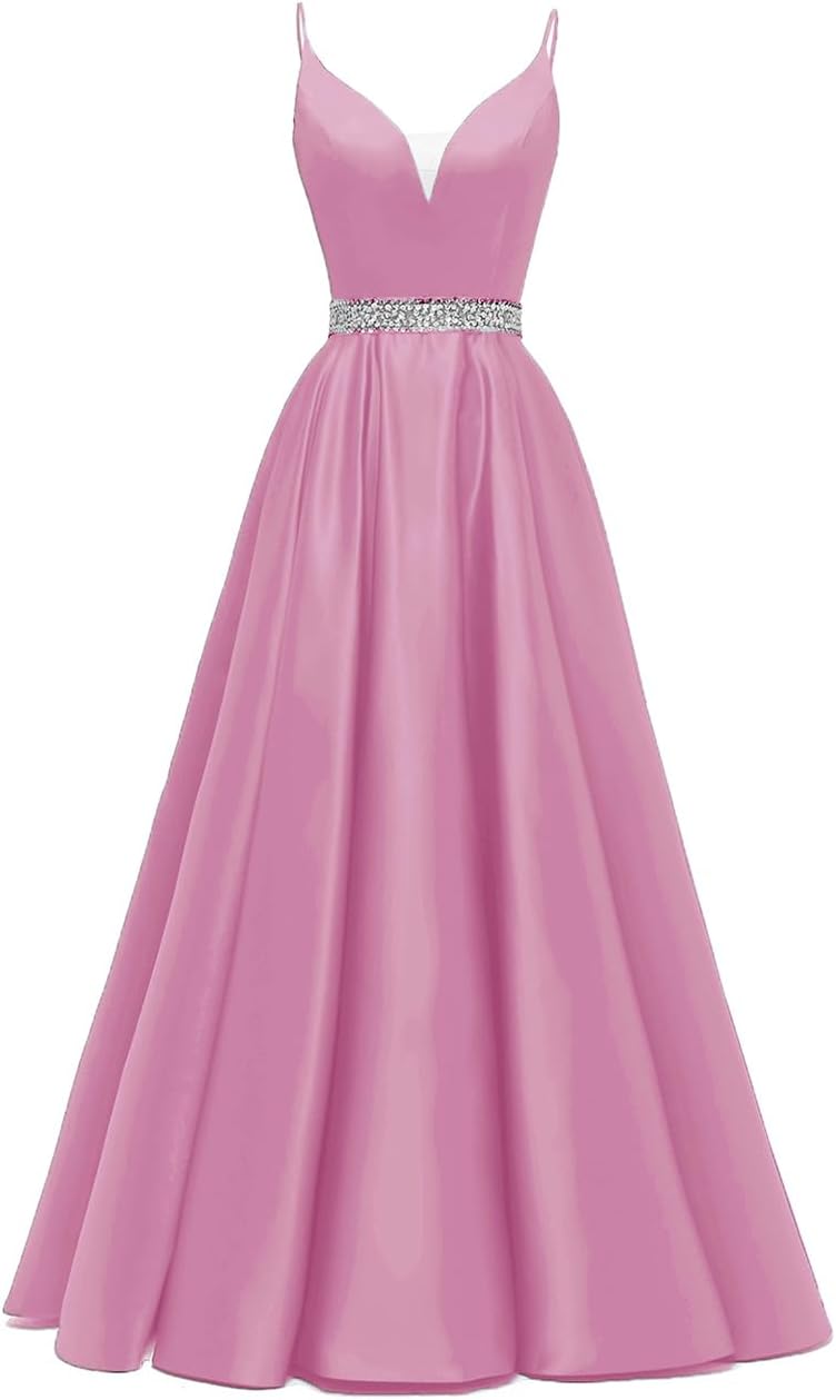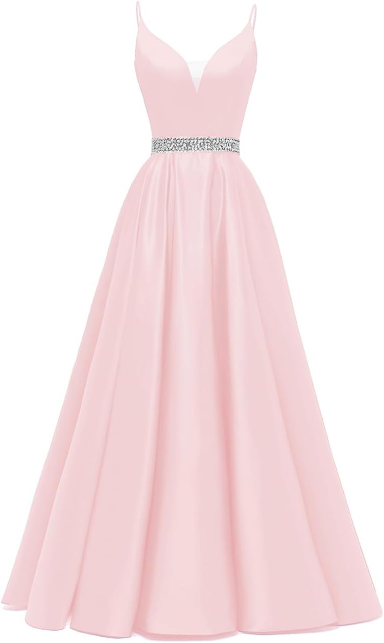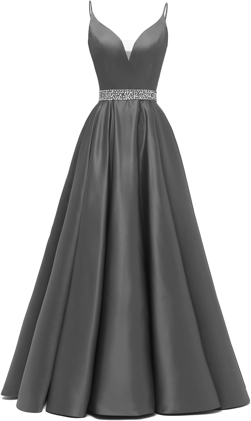 Spaghetti Straps Prom Dress Long Satin Beaded V-Neck Formal Evening Party Ball Gowns with Pockets
